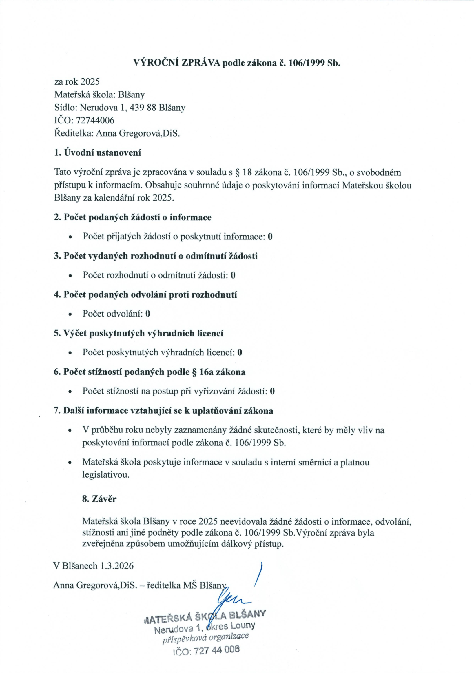 MATEŘSKÁ ŠKOLA BLŠANY